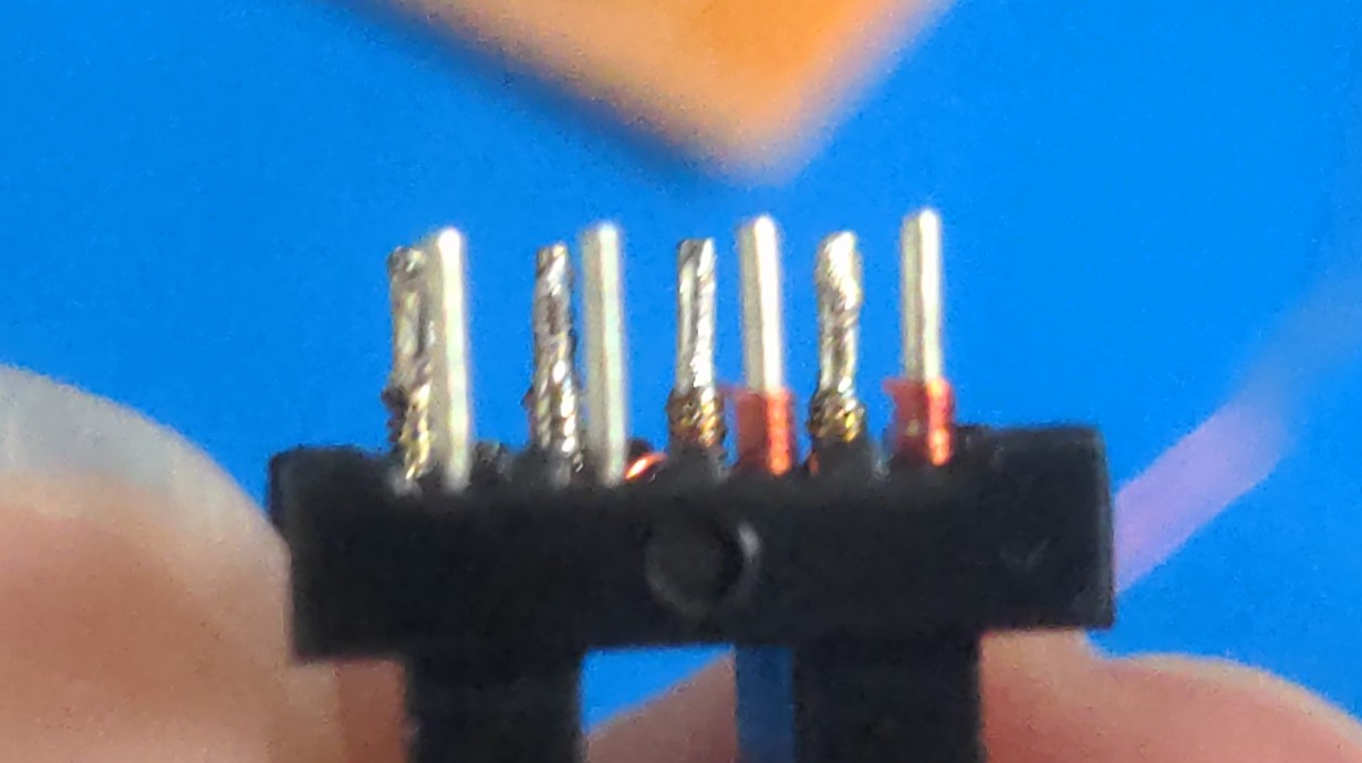 When wrapping, ensure that the wires pass over this rounded strain relief section on their way away from the pins. This prevents the plastic from wearing away at the wire.