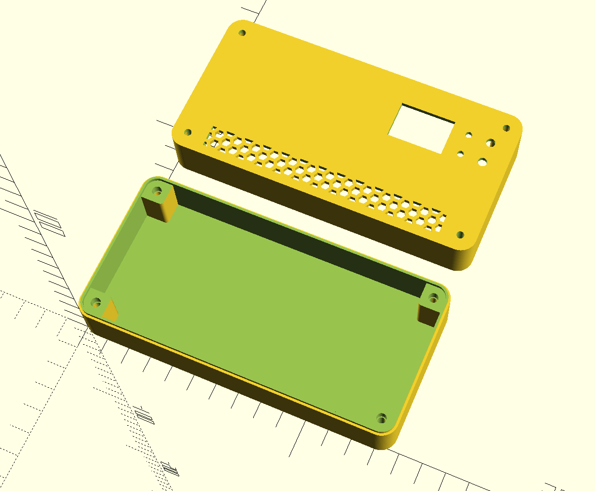 This is a parametric enclosure generator I made that suits the style of the majority of PCBs I make. Rectangular with a radius. The generator produces two halves which overlap with a lip, has support material for bolts to go into, and cuts out additional space for heat-set threaded inserts for the bolts.